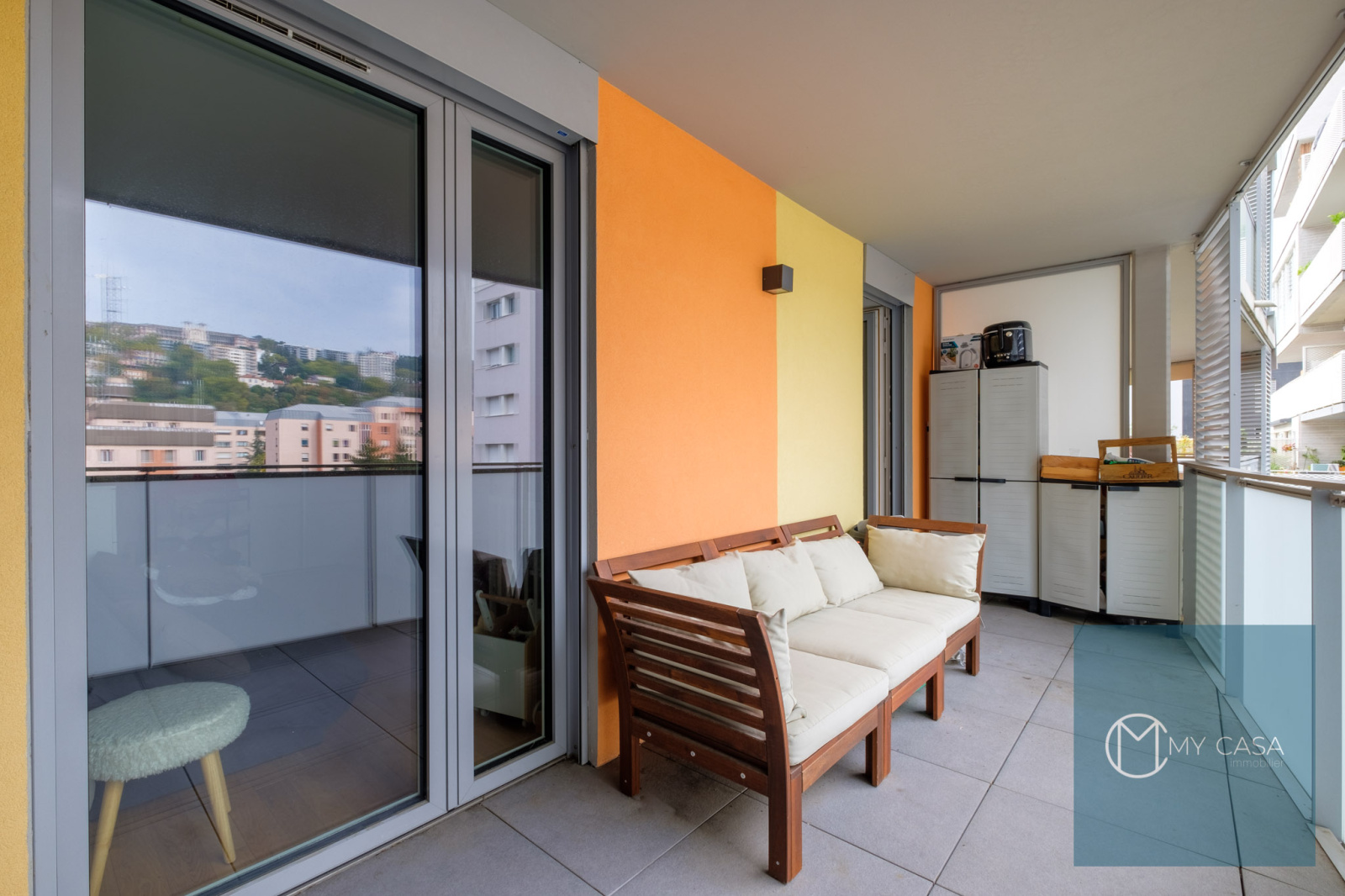 Enzo Molina vous propose en exclusivité à Confluence dans un immeuble récent au 3 ème étage avec ascenseur ce magnifique T3 d'env 70 m2. Il se compose d'une belle pièce de vie avec cuisine semi ouverte équipée, la cuisine donne sur une grande terrasse côté Ouest et le pièce de vie donne sur une autre terrasse côté Est. Une partie nuit avec 2 chambres donnant elles aussi sur une terrasse, une grande salle de bains, un Wc séparé, poss achat parking en sus. Appartement en parfait état, traversant Est-Ouest, 2 belles terrasses, au pied des commerces et transports.