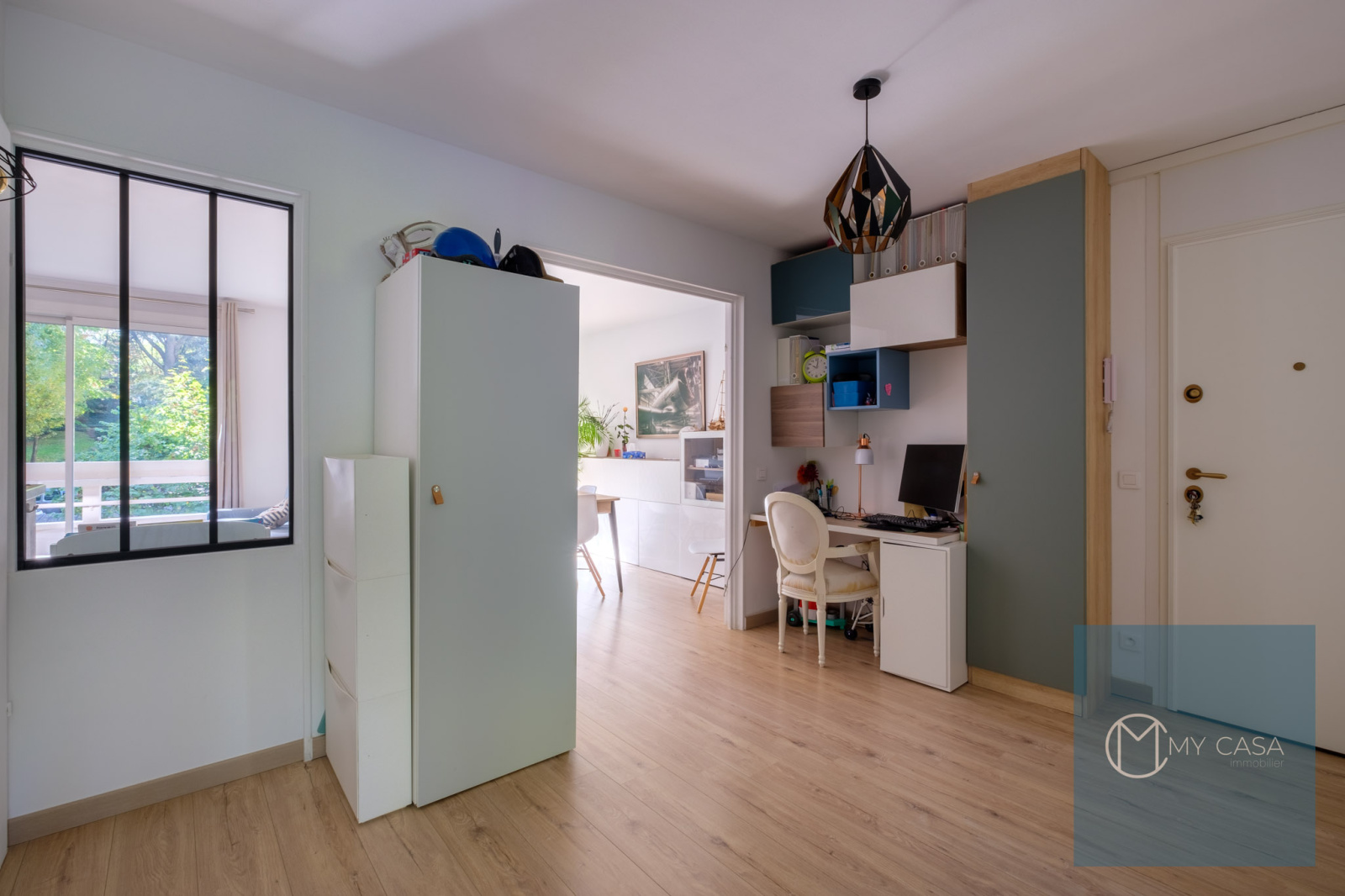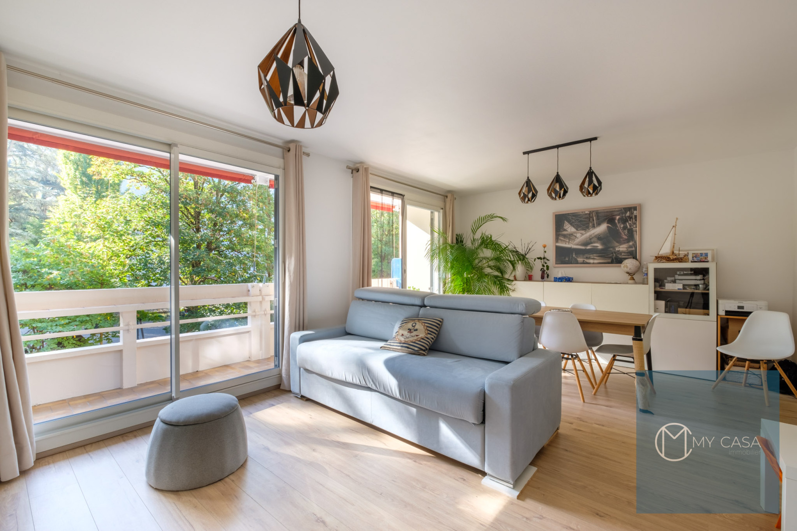 EXCLUSIVITE - Julie MATTELON vous propose sur Lyon 5ème, secteur Champvert, à 5min à pied des commerces du Point du Jour, des écoles et transports, dans une copropriété calme et familiale avec gardiens au sein d’un environnement verdoyant. Au 3ème étage avec ascenseur, ce joli T3 traversant de 62m2, entièrement rénové avec des matériaux de qualité, est composé d’une entrée avec un espace bureau aménagé, un séjour double donnant sur un balcon de 6,43m2 (exposition sud) avec vue dégagée sur parc arboré, une cuisine séparée et équipée, une chambre de 13 m2 avec placard aménagé, une salle d’eau, wc séparé. Vendu libre avec une cave, stationnement libre au sein de la résidence. Poss créer une seconde chambre.