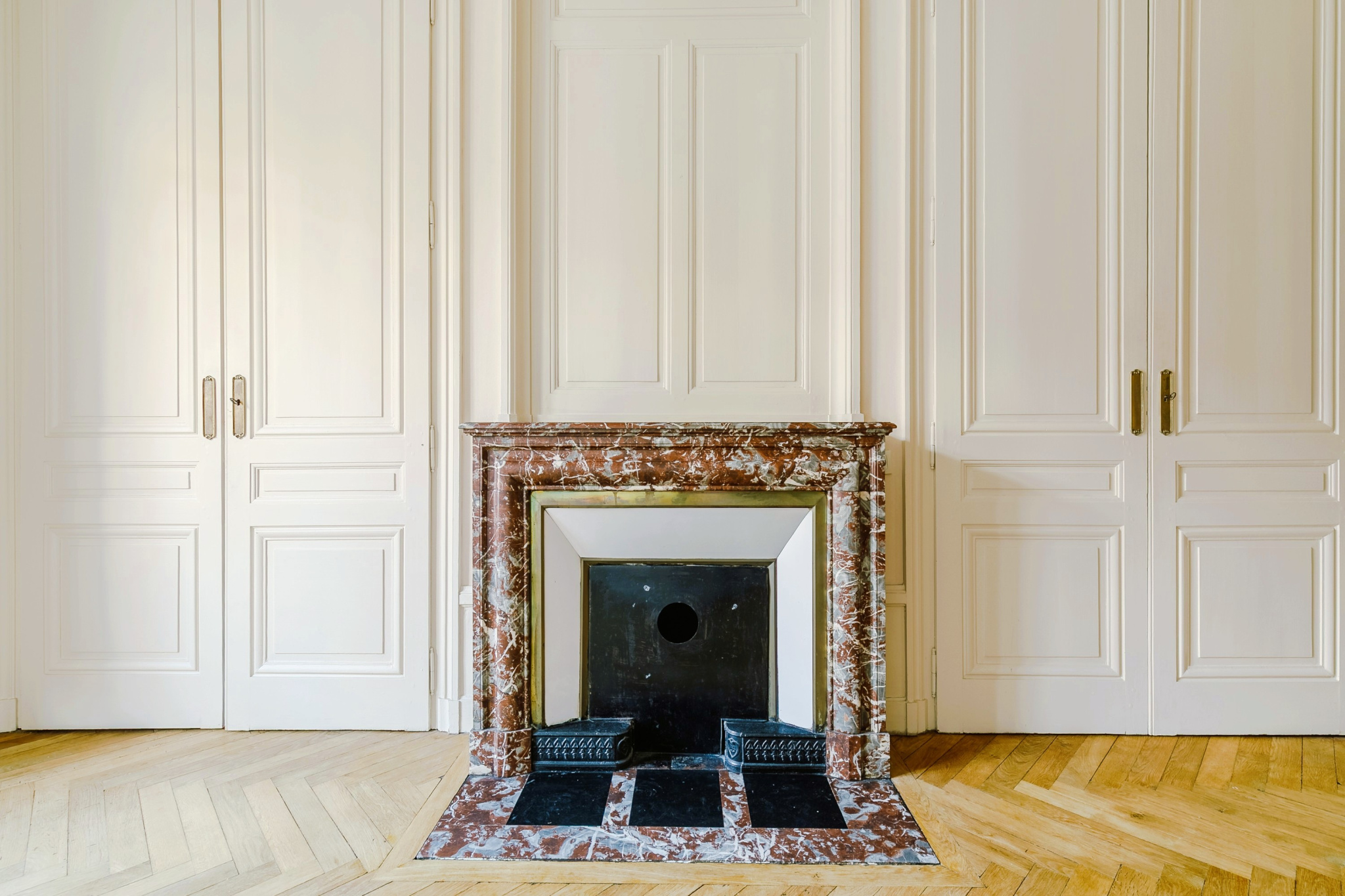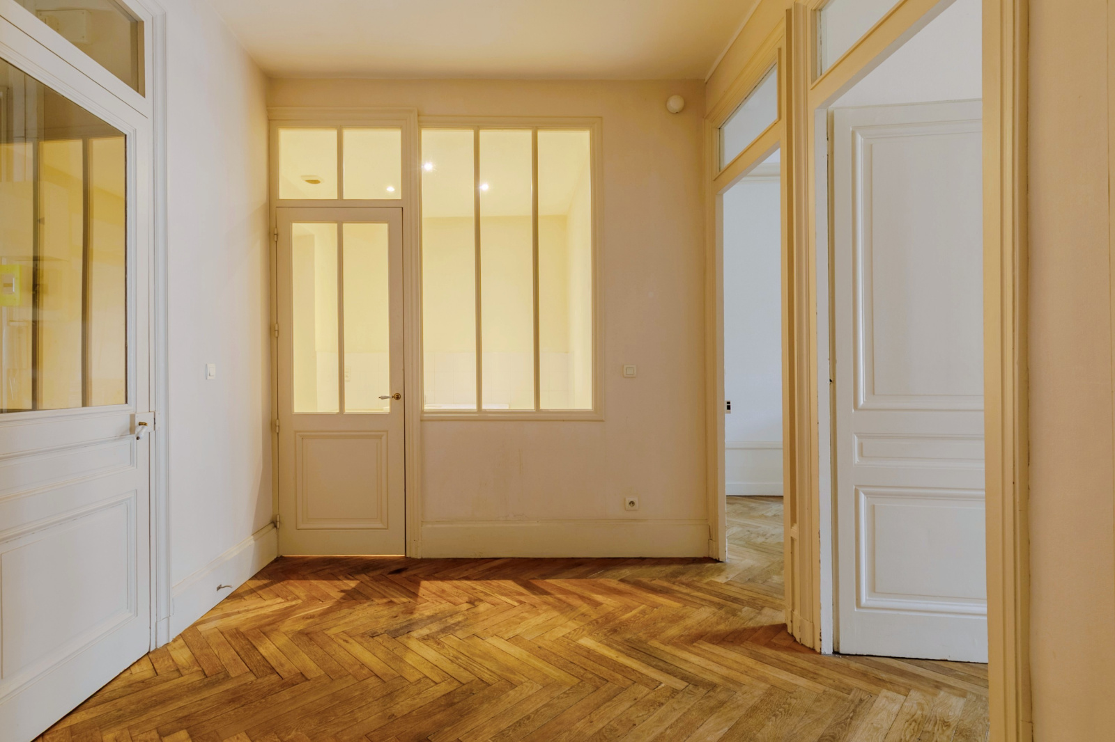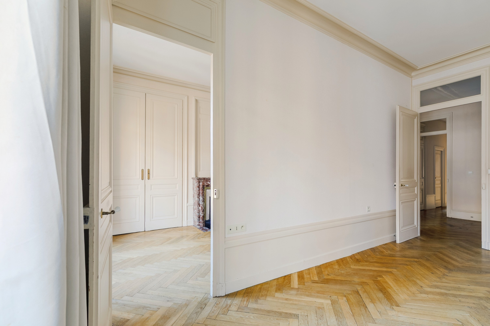 Parquet massif à bâton rompu, cheminées en marbre, boiseries, moulures, lambrequins aux fenêtres, belle hauteur sous plafond et nombreux rangements : tous les marqueurs de l'ancien sont bien présents et au fil des pièces, le charme opère.