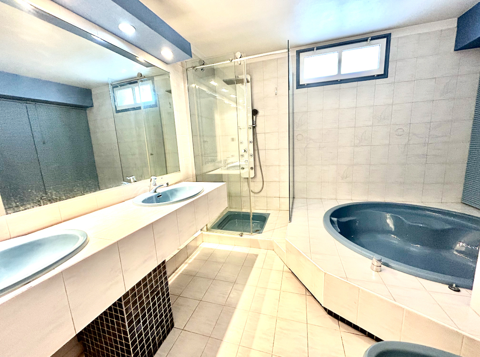 Une belle pièce de vie lumineuse ouverte sur une cuisine équipée, une grande salle de bain avec douche, baignoire, double vasque et fenêtre, un WC indépendant, ainsi qu’une suite parentale confortable. -