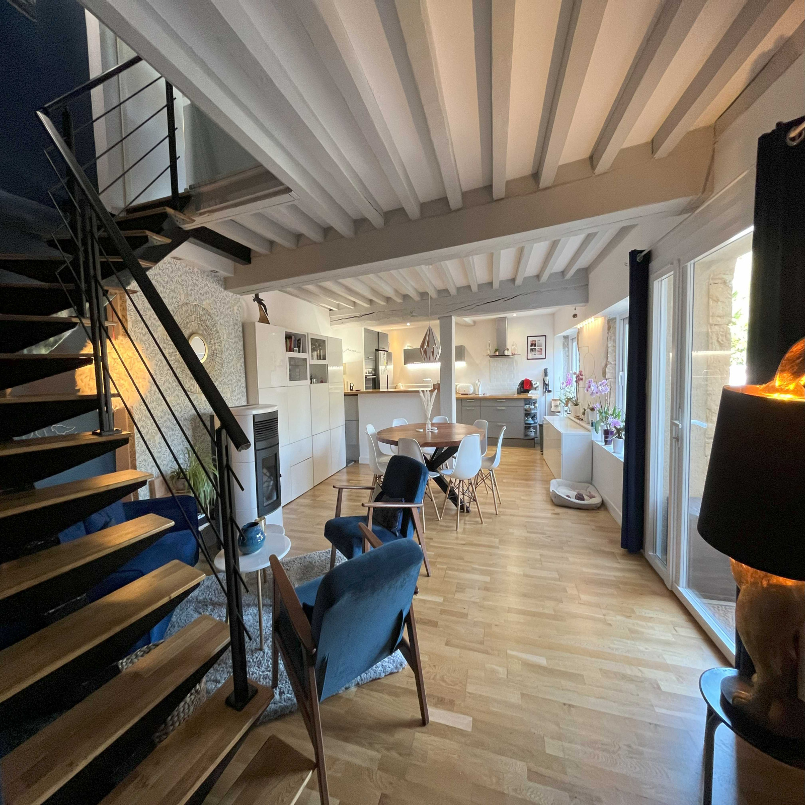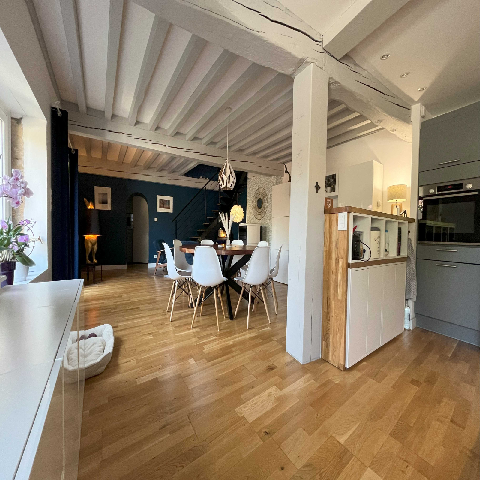 EXCLUSIVITE - Bastien STERCKEMAN vous propose au coeur du village, au pied des commerces, des écoles et à 10km environ de Lyon, cette superbe maison en pierres dorées entièrement rénovée (toiture isolée 2016) sur 3 niveaux. Découvrez la qualité de la rénovation et les matériaux haut de gamme dès l'entrée avec dressing, salle d'eau et buanderie donnant accès à une très belle cave voutée avec pierres apparentes procurant un charme unique et authentique à cette pièce de 42 m2 aux multiples usages. Profitez ensuite à l'étage d'une cuisine équipée (2022) et ouverte sur le séjour lumineux pour une pièce de vie de 38 m2 avec poêle à granules accès direct au jardin attenant(Rare), au même niveau bénéficiez de 2 chambres de 10 m2 et une salle de bain. Au dernier étage, retrouvez un espace composé d'une chambre, salle d'eau et WC séparé ainsi que 2 chambres mansardées avec vélux électriques. Vous apprécierez le jardin paysagé de 80 m2 avec sa piscine, le sauna, les terrasses pour un coin intimiste sans vis à vis et au calme absolu pour vous détendre avec vos proches, il dispose également de nombreux espaces de rangement, atelier et WC extérieur. Charme de l'ancien alliant le moderne avec les très belles prestations. DPE C. Un véritable cocon familial à voir sans tarder...