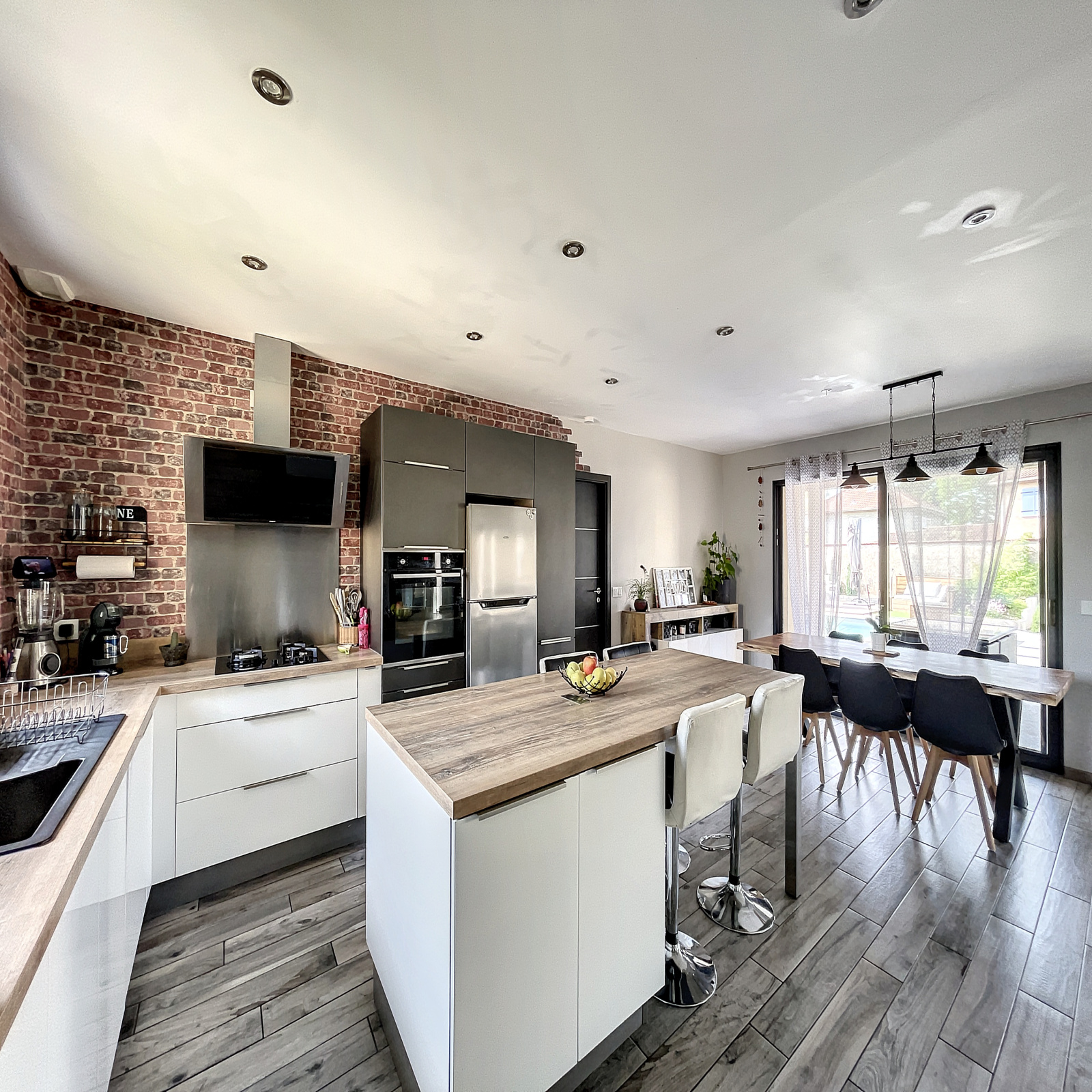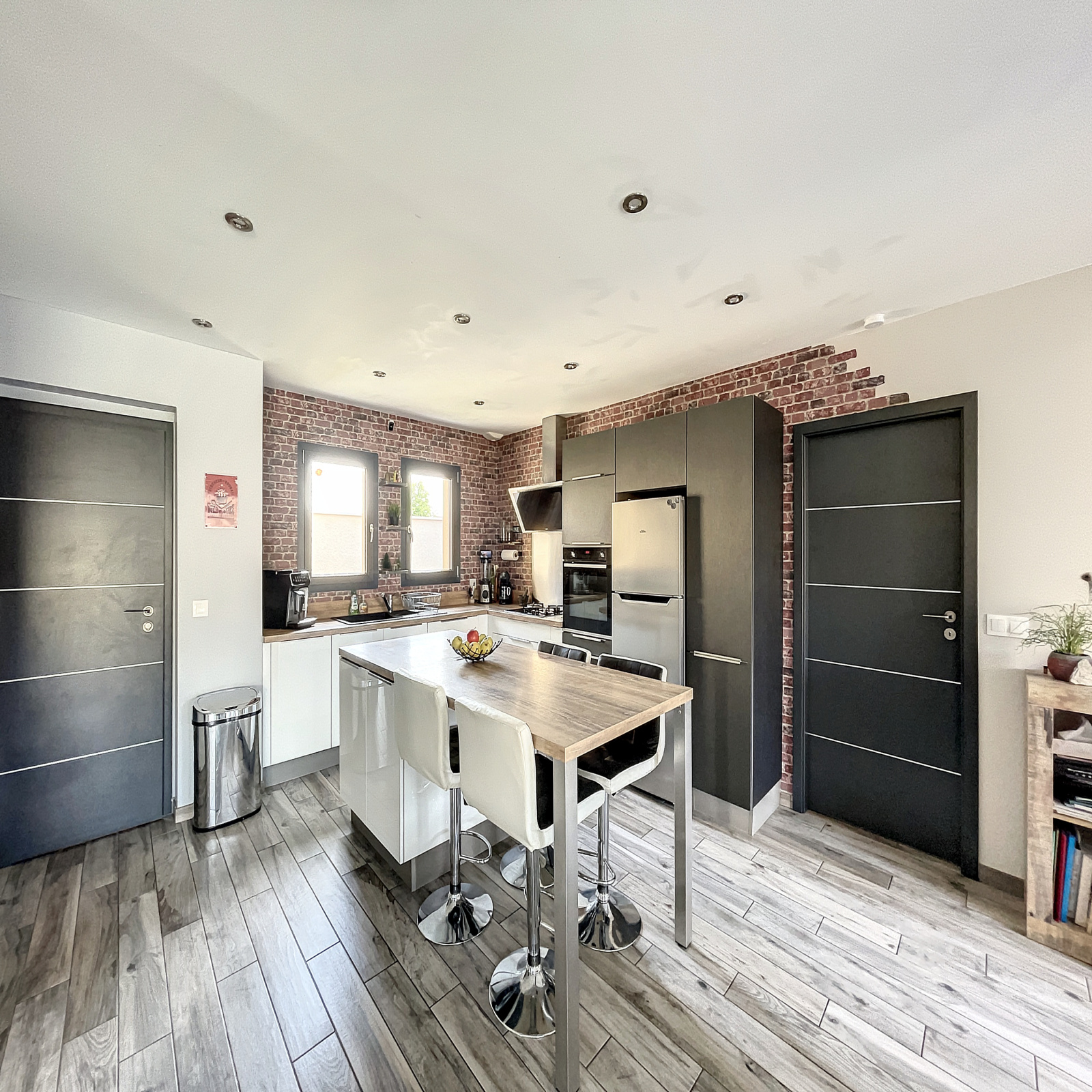 Cette maison contemporaine est composée d'une entrée avec placard, une belle pièce de vie de 50 m2 avec cuisine ouverte sur le salon/salle à manger, un salon home cinéma avec isolation acoustique ( possibilité d'une chambre), quatre chambres dont une suite parentale avec salle d'eau, deux WC, une salle de bain , une buanderie et un garage.