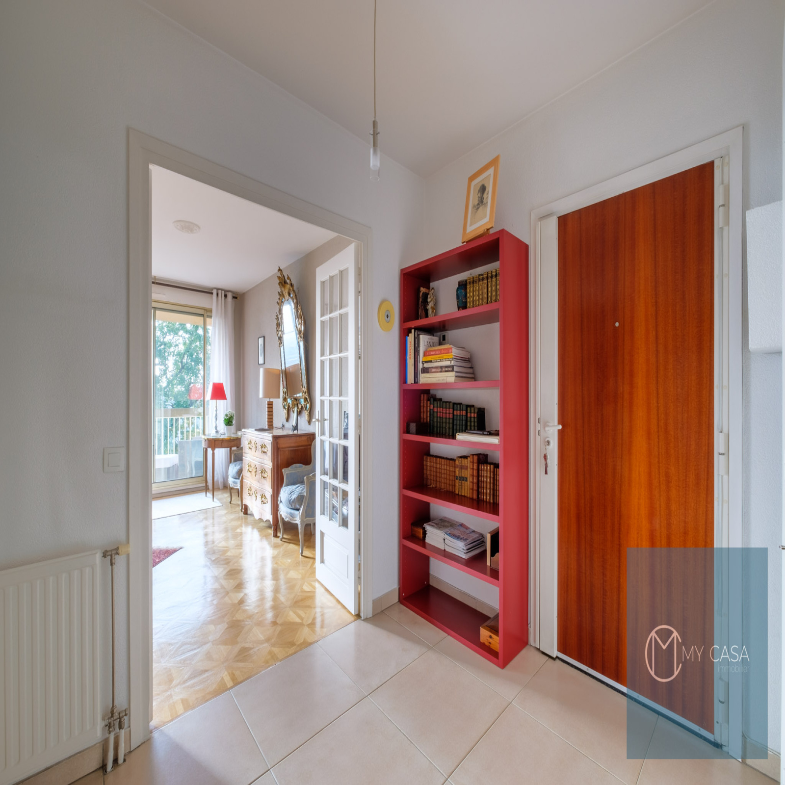 Julie Mattelon vous propose sur Sainte-Foy-Les-Lyon, à proximité du centre et des transports, dans une copropriété de standing des années 80, bien entretenue avec parc arboré et cours de tennis. Au 2ème étage avec ascenseur, ce T4 traversant de 108,14 m2 est composé d’une entrée avec placard, un séjour lumineux de 31m2 avec joli parquet donnant sur un balcon, vue dégagée, sans vis à vis (exposition sud/est) , une cuisine séparée et équipée avec coin salle à manger (poss de créer un bureau/chambre), un cellier attenant , un dégagement desservant une chambre de 14,03 m2 avec placard aménagé, un dressing, une seconde chambre de 11,91m2, une salle de bain, wc séparé. Vendu libre avec une cave, une place de parking extérieur.
