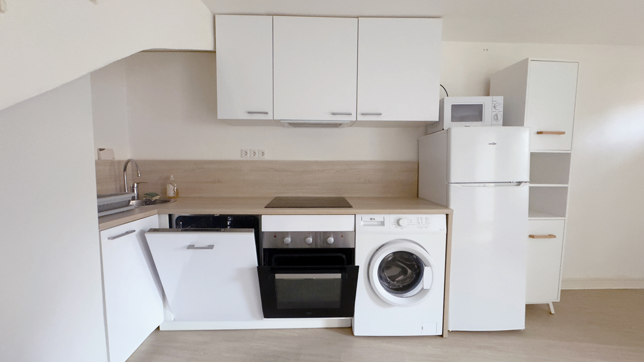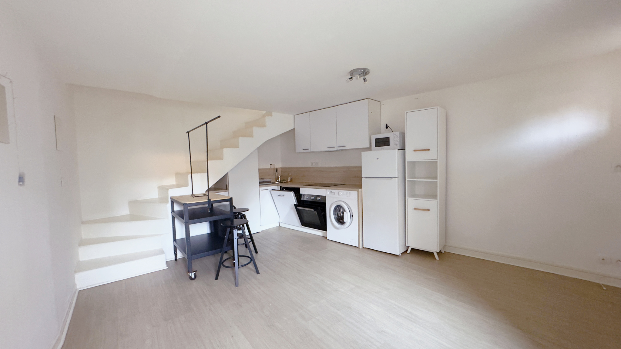 Donnant sur une petite cour calme et très peu passante, elle se compose d’une pièce de vie avec cuisine équipée, à l’étage vous trouverez une chambre avec dressing, salle d’eau et WC.