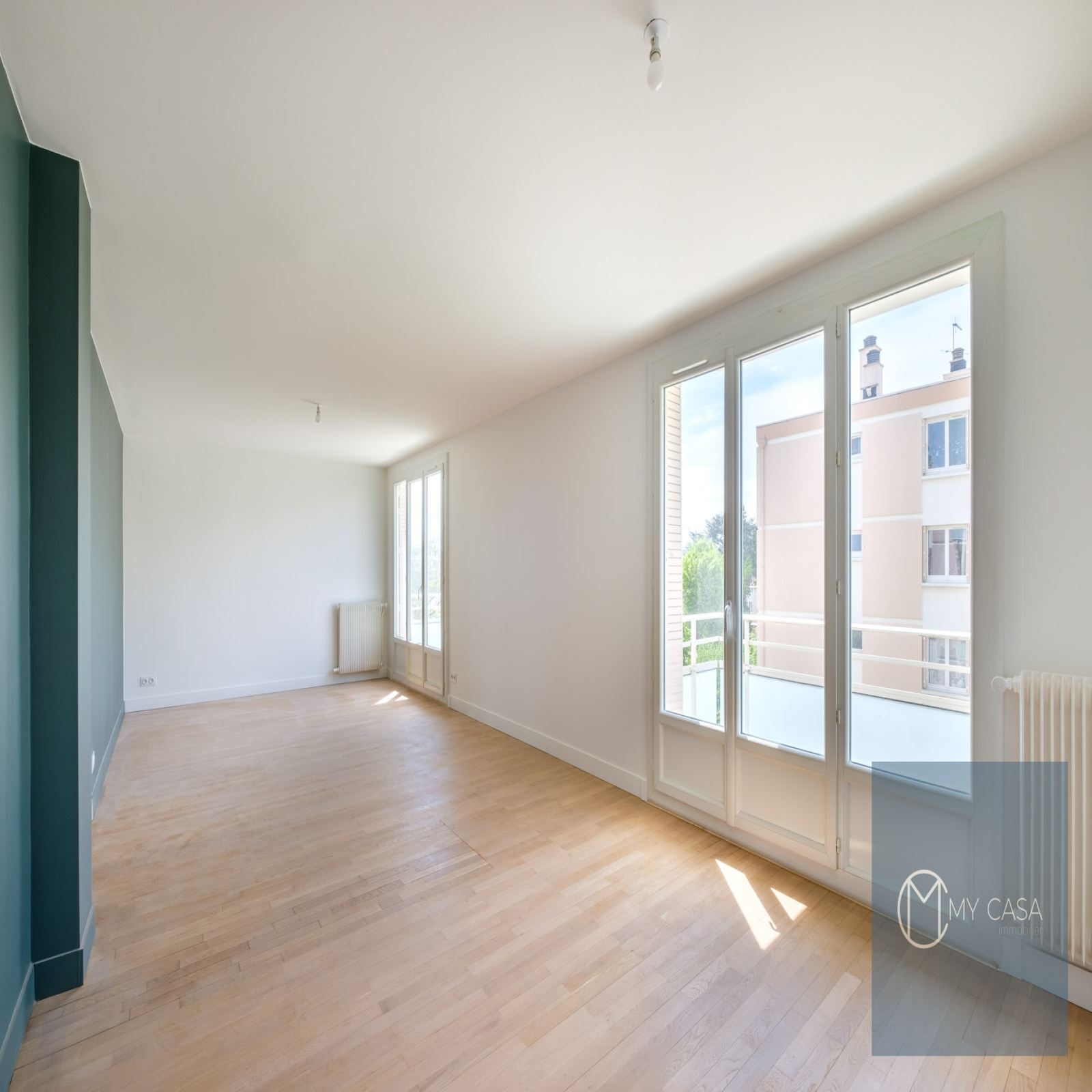 Enzo Molina vous propose en exclusivité rue Pierre Brunier à Caluire dans une résidence calme et sécurisée au 3 ème étage avec ascenseur ce beau T4 d'env 83m2. Il se compose d'une cuisine séparée équipée donnant sur une loggia, un grand séjour avec parquet donnant sur 2 petits balcons, 3 chambres avec parquet, une salle d'eau, un wc séparé, du rangement.