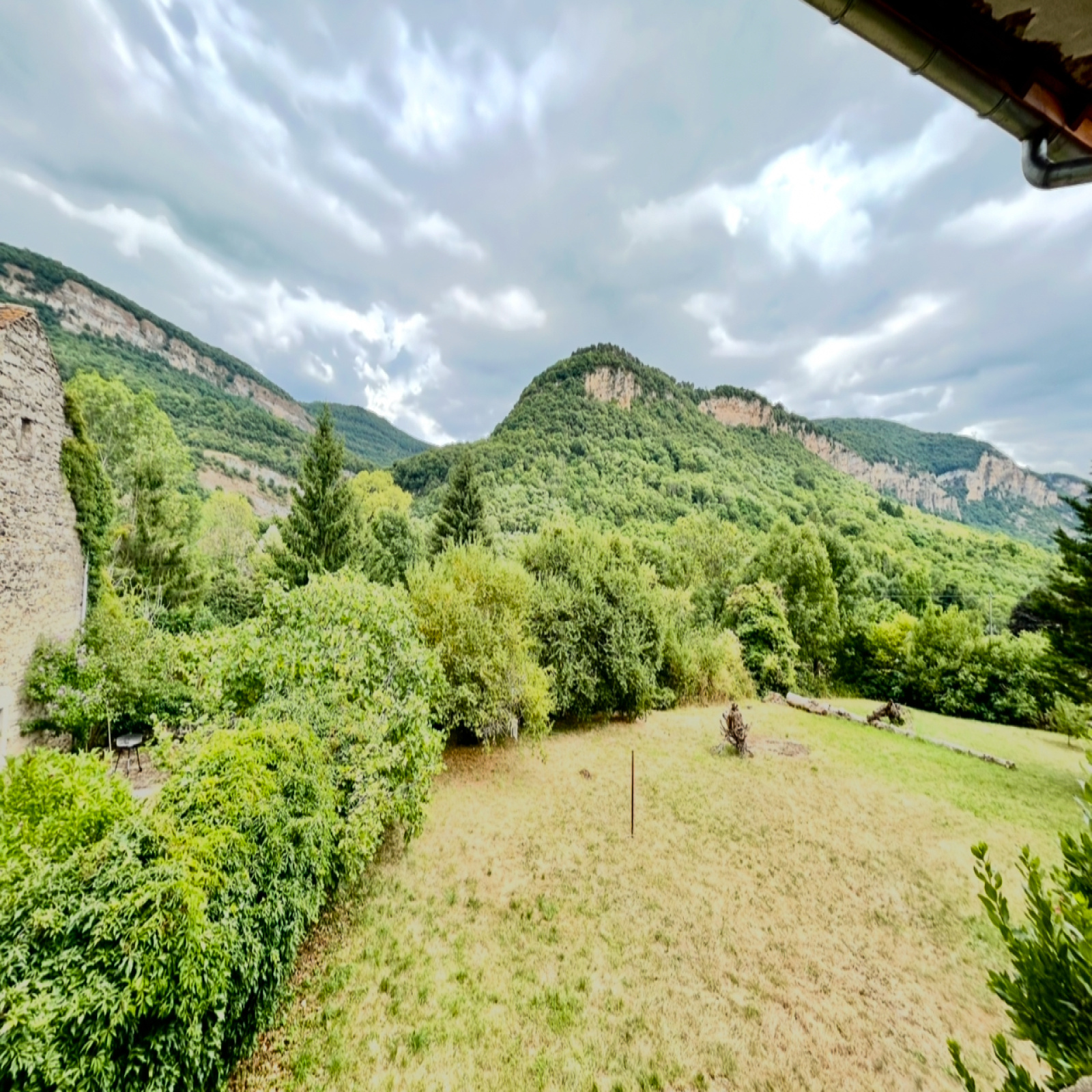 Grand terrain attenant d'environ 1 200m² à l’arrière, offrant une superbe vue dégagée sur les montagnes